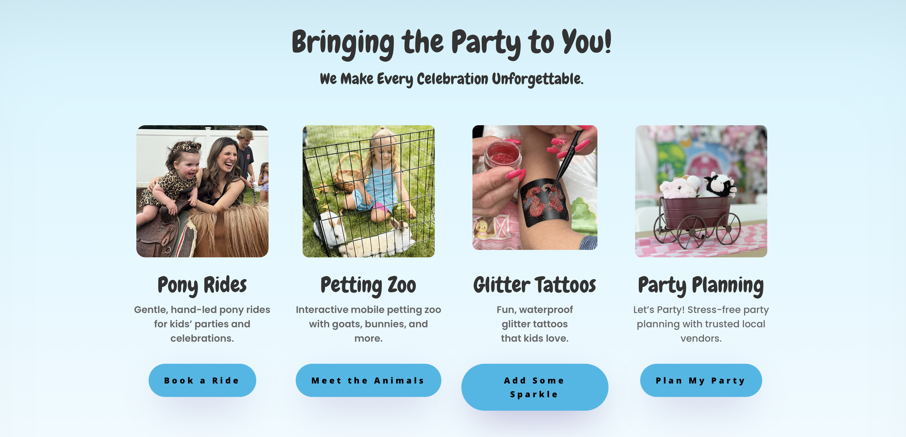 Poor SEO structure, limiting visibility for searches like “petting zoo NJ” or “pony rides near me.”